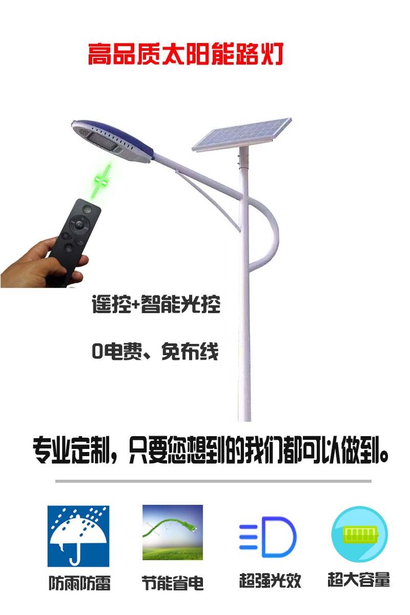 2. 全面理解太陽能路燈燈具、光源、燈桿的特性,針對(duì)道路實(shí)踐和參考的照明規(guī)范,分離投資預(yù)算,合理地選用太陽能燈具、光源、燈桿,以充沛發(fā)揮 光源的高效節(jié)能,太陽能燈具的配光性、配件組合的優(yōu)勢(shì)。